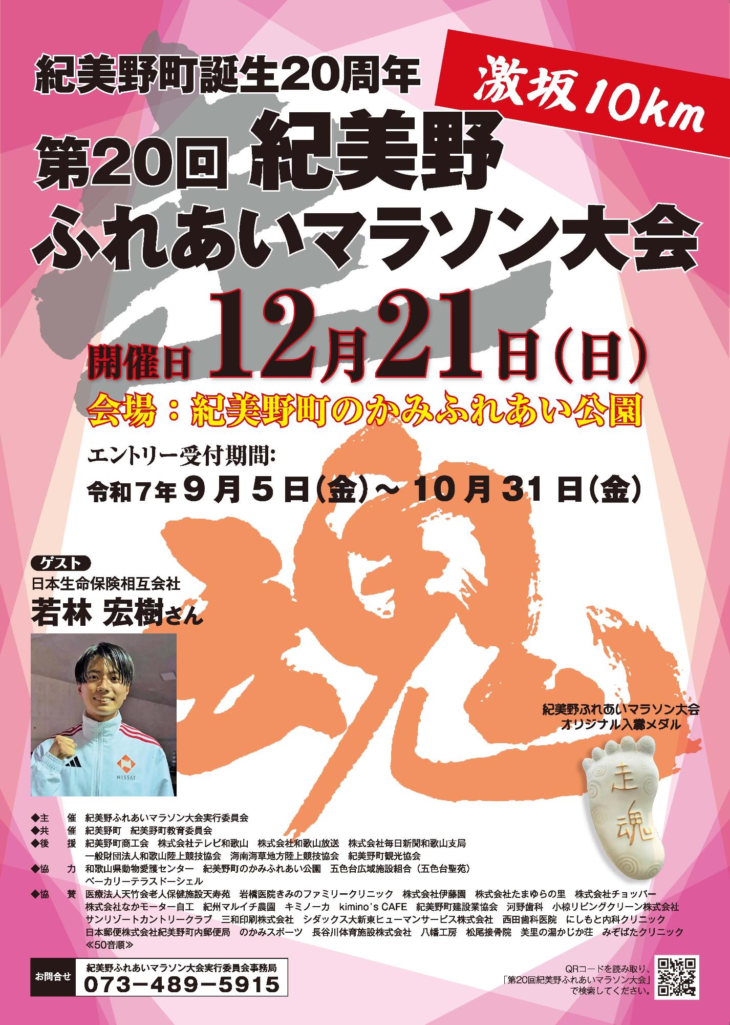 紀美野町誕生20周年 第20回紀美野ふれあいマラソン大会の開催について