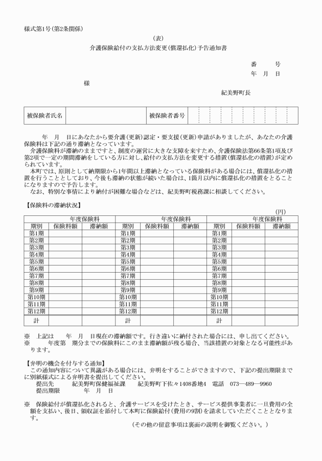 ○紀美野町介護保険の保険給付の制限に関する要綱