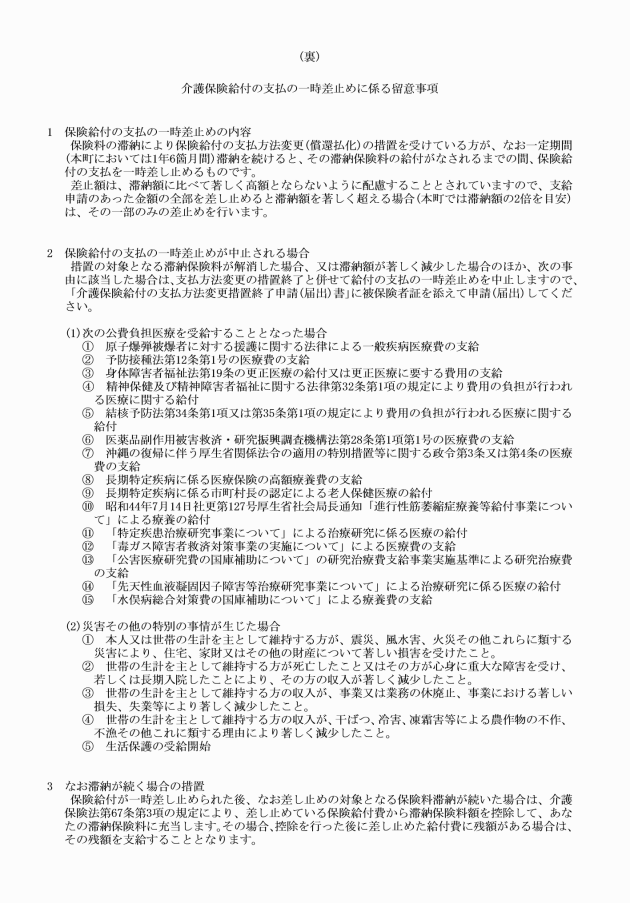 第15条 町長は、法第69条第1項の規定により給付額減額等の記載を行う場合には、介護保険給付額減額通知書(様式第22号)により被保険者に通知する。