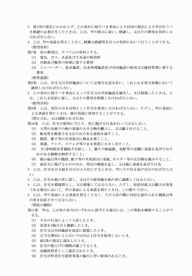 第4条 条例第12条第1項第1号の賃貸借契約書は、特定町営住宅賃貸借契約書(様式第3号)とする。