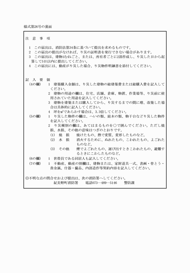 (2) り災届証明 客観的に火災でり災した事実が推測され、かつ、り災者が届出ている場合に、り災届証明書(様式第39号)により行うもの